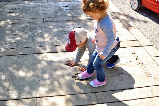 Connor was excited to see this dinosaur and ran up to it with no problems. Chloe wasn't so sure and kept her distance.