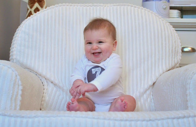 His personality is coming out more and more and he wants to be on the move so bad! He scoots and is constantly working on trying to crawl.